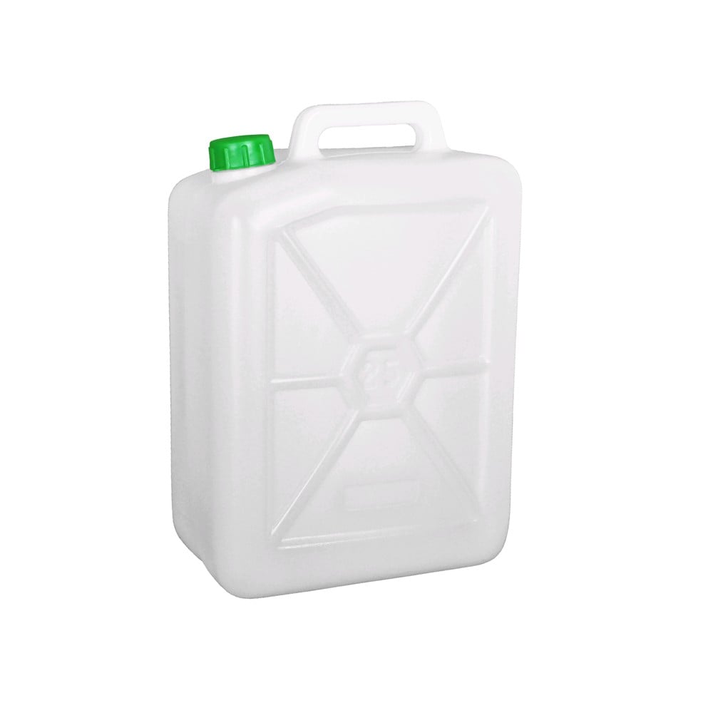 Bidon plastik 25 Lit. Përdoret gjerësisht për ruajtjen e pijeve të ndryshme si raki, verë, vaj, etj dhe te ujit. Eshtë një produkt mjaft cilesor dhe higjenikisht i pastër