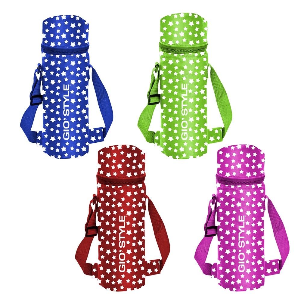 Stars thermal bottle holder in 600 D polyester with aluminum interior. 8mm thick high density polyethylene foam insulation. Print with star motif. Equipped with adjustable shoulder strap.