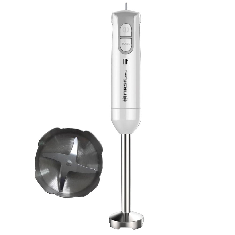 Blenderi i dorës nga marka cilësore First Austria është një pajisje e dobishme në çdo kuzhinë. Me fuqinë 600 W dhe sistemin me 4 tehe të mprehtë ju mund të bëni pure shpejt dhe në mënyrë efektive. Butonat e kontrollit janë të lehtë për tu shtypur dhe butoni turbo ju jep fuqi maksimale me prekjen e një butoni.