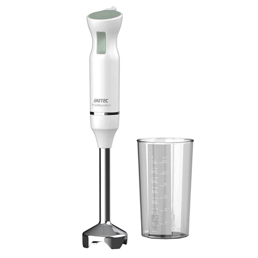Imetec FrullaRapido+, Blender dore Imetec FrullaRapido+ me tehe prej çeliku inox. - 800 W fuqi për përzierjen pa mundim dhe në vetëm disa sekonda. Këmbë XL me dizajn kundër spërkatjes për supat e puresë pa mbetje - Kupa e shkallëzuar pa mbetje 700 ml BPA - Kompakt dhe ergonomik, i lehtë për t'u përdorur - Prerësi i ndashëm prej çeliku inoks për pastrim të lehtë i blenderit - Funksionimi me puls me një shpejtësi me çelës aktivizimi - Tehe inox - Pesha 0.97 kg, dimensionet 7.5x11x39.5 cm