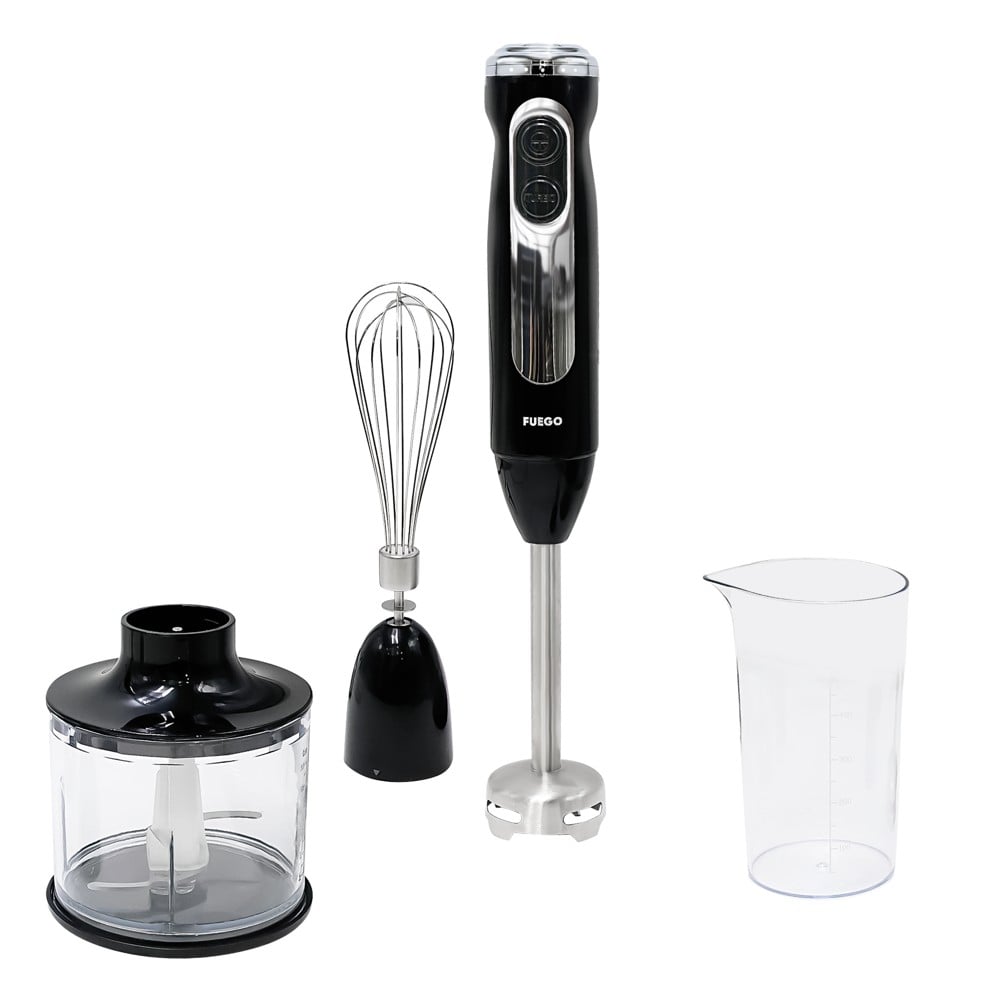 Blender dore me 800 Watt. Set 3 në 1 për purejen e supave të nxehta, copëtimin e qepëve dhe rrahjen e kremit dhe të bardhëve të vezëve. 2 nivele shpejtësie. Enë 600 ml dhe 2 tehe të mprehta çelik inox. Përfshirë gotën matëse me peshore, 50ml, 100ml, —, 700ml. Ideale për petullat brumin e vafleve, për salcat, të bardhat e vezëve dhe kremin.