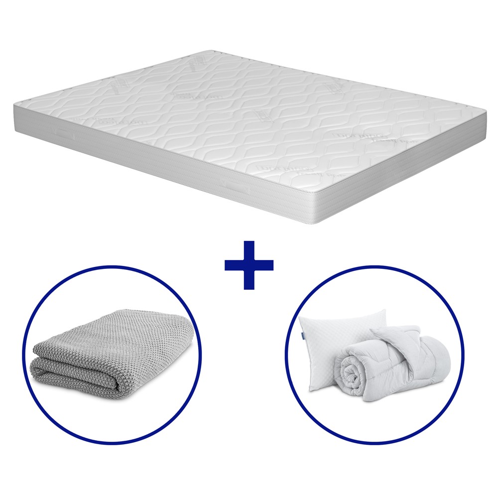 Po vlerësoni:Bli dyshek 160x190cm, përfiton falas (Jorgan 200x200cm + 2 jastëkë) si dhe Batanije 200x200cm