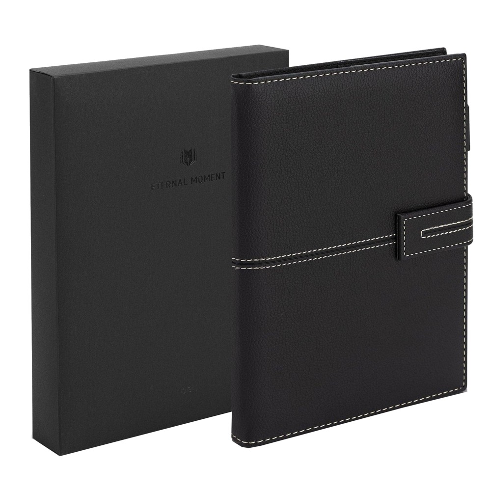Bllok shenimesh Deli, A5, lëkurë në ngjyrë te zeze, me 120 fletë. Elegant dhe i qëndrueshëm, ideal për shënime dhe organizimin e tyre.