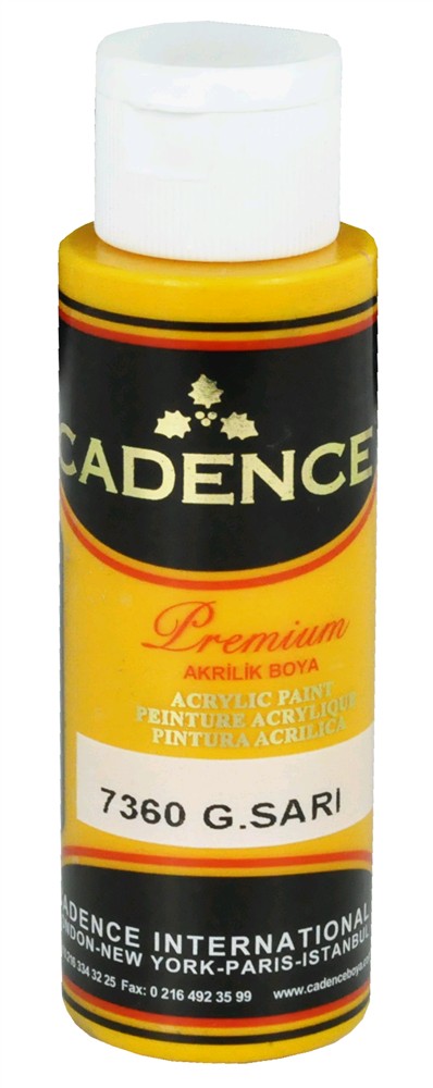 Bojë akrilike shumë përdorimshe. Cilësia e parë e bojërave akrilike përdoret për piktura dekorative. Boja akrilike është me bazë uji dhe jo toksike. Është gjysmë me shkëlqim mund të lyhet me sprite për të krijuar variacione shkëlqimesh. CADENCE ka një gamë të gjërë ngjyrash që mund të përzihen. Ka një qëndrueshmëri të lartë dhe paketime që ju përgjigjet të gjitha nevojave, mbulim të shkëlqyer dhe përzihet lehtë. Kjo bojë mund të përdoret në disa sipërfaqe si: dru, MDF, kanavas, suva, mure, qirinj, pëlhure, lëkure, polisterol, baltë polimer dhe metal.