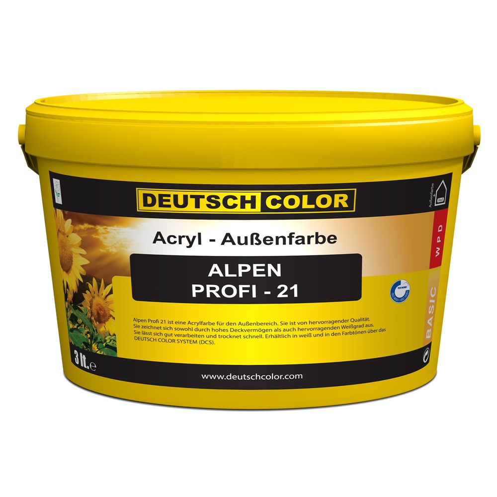 Alpen Profi 21 është bojë me bazë rezine akrilike për përdorim të jashtëm. Karakterizohet nga fuqi mbuluese dhe bardhësi e shkëlqyer. Është një produkt ekonomik për përdorim profesional, i cili mbron sipërfaqet e jashtme në varësi të kushteve atmosferike.
