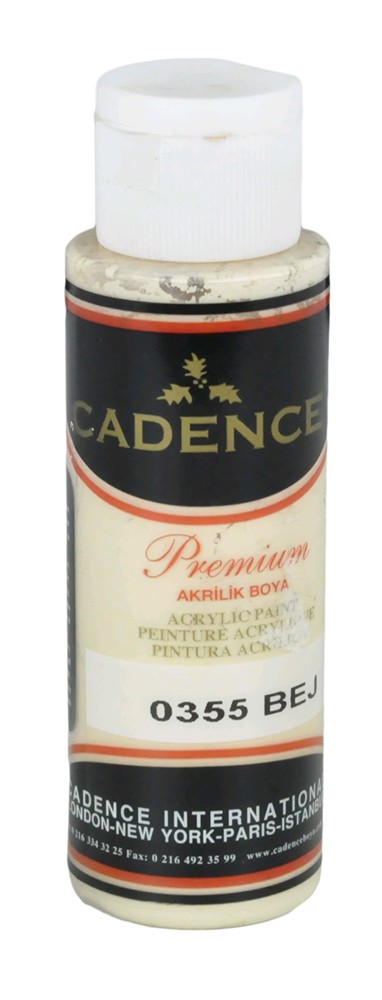 Bojë akrilike shumë përdorimshe. Cilësia e parë e bojërave akrilike përdoret për piktura dekorative. Boja akrilike është me bazë uji dhe jo toksike. Është gjysmë me shkëlqim mund të lyhet me sprite për të krijuar variacione shkëlqimesh. CADENCE ka një gamë të gjërë ngjyrash që mund të përzihen. Ka një qëndrueshmëri të lartë dhe paketime që ju përgjigjet të gjitha nevojave, mbulim të shkëlqyer dhe përzihet lehtë. Kjo bojë mund të përdoret në disa sipërfaqe si: dru, MDF, kanavas, suva, mure, qirinj, pëlhure, lëkure, polisterol, baltë polimer dhe metal.