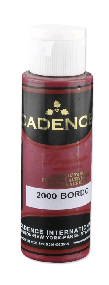 Bojë akrilike shumë përdorimshe. Cilësia e parë e bojërave akrilike përdoret për piktura dekorative. Boja akrilike është me bazë uji dhe jo toksike. Është gjysmë me shkëlqim mund të lyhet me sprite për të krijuar variacione shkëlqimesh. CADENCE ka një gamë të gjërë ngjyrash që mund të përzihen. Ka një qëndrueshmëri të lartë dhe paketime që ju përgjigjet të gjitha nevojave, mbulim të shkëlqyer dhe përzihet lehtë. Kjo bojë mund të përdoret në disa sipërfaqe si: dru, MDF, kanavas, suva, mure, qirinj, pëlhure, lëkure, polisterol, baltë polimer dhe metal.