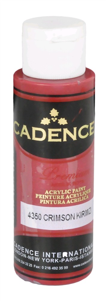 Bojë akrilike shumë përdorimshe. Cilësia e parë e bojërave akrilike përdoret për piktura dekorative. Boja akrilike është me bazë uji dhe jo toksike. Është gjysmë me shkëlqim mund të lyhet me sprite për të krijuar variacione shkëlqimesh. CADENCE ka një gamë të gjërë ngjyrash që mund të përzihen. Ka një qëndrueshmëri të lartë dhe paketime që ju përgjigjet të gjitha nevojave, mbulim të shkëlqyer dhe përzihet lehtë. Kjo bojë mund të përdoret në disa sipërfaqe si: dru, MDF, kanavas, suva, mure, qirinj, pëlhure, lëkure, polisterol, baltë polimer dhe metal.