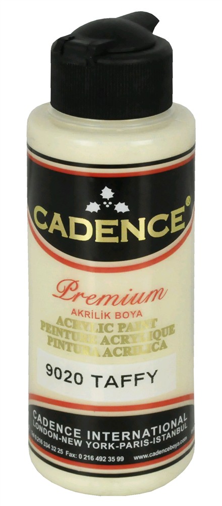 Bojë akrilike shumë përdorimshe. Cilësia e parë e bojërave akrilike përdoret për piktura dekorative. Boja akrilike është me bazë uji dhe jo toksike. Është gjysmë me shkëlqim mund të lyhet me sprite për të krijuar variacione shkëlqimesh. CADENCE ka një gamë të gjërë ngjyrash që mund të përzihen. Ka një qëndrueshmëri të lartë dhe paketime që ju përgjigjet të gjitha nevojave, mbulim të shkëlqyer dhe përzihet lehtë. Kjo bojë mund të përdoret në disa sipërfaqe si: dru, MDF, kanavas, suva, mure, qirinj, pëlhure, lëkure, polisterol, baltë polimer dhe metal.