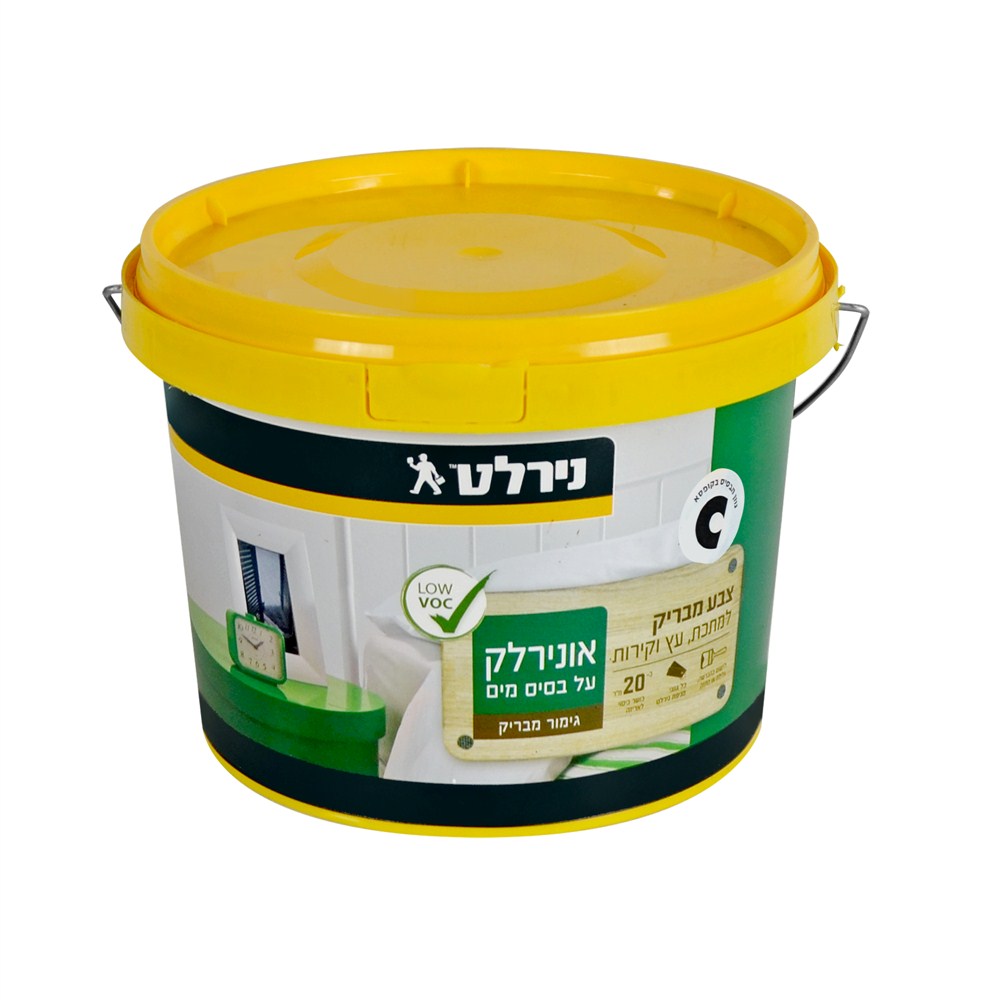 Boje me baze uji, universale me shkelqim 3 L e bardhe. Bojë me cilësi të lartë që mund të aplikohet në çdo sipërfaqe druri, muri dhe metali, për përdorim të brendshëm dhe të jashtëm. Mban shenjen e standarteve Izraelite Israel Standard 765. Tipare speciale: Shkelqim i larte, elasticitet maksimal. Jazhtezakonisht rezistente ne kushte te ashpra te jashteme. Nuk permban plumb. Perhapet shume mire ne siperfaqe kur aplikohet me furce. Perdoret me qellim per lyerje dekorative mbi nje Astar te pershtatshem. Tretja: Sasia e tretjes (ne volum) deri ne: Furce: 5 %. Rul: 5 %, sperkates i zakonshem: 20 %, presioni i ajrit: 3-4. Te dhenat materiale: Nuanca e ngjyrimit: Nuancat RAL ne perputhje me katalogun Nirlat Millenium Niveli i shkelqimit: I larte DFT mikrone: 35. Mbulimi 12 (m²/L) ne varesi te nuances, Mbulimi praktik varet nga kushtet e siperfaqes qe lyhet, ashpersia e siperfaqes, kushtet atmosferike, mjetet e punes etj. Kohezgjatja e tharjes per tu prekur: 2-3 ore, kohezgjatja e tharjes deri ne rilyerje: 24 ore. % e trupave solide (ne peshe): 50-60% (ne varesi te nuances se ngjyrimit). Mos e perdorni kur temperatura eshte nen 7 grade C ose kur parashikohet mot me shi.