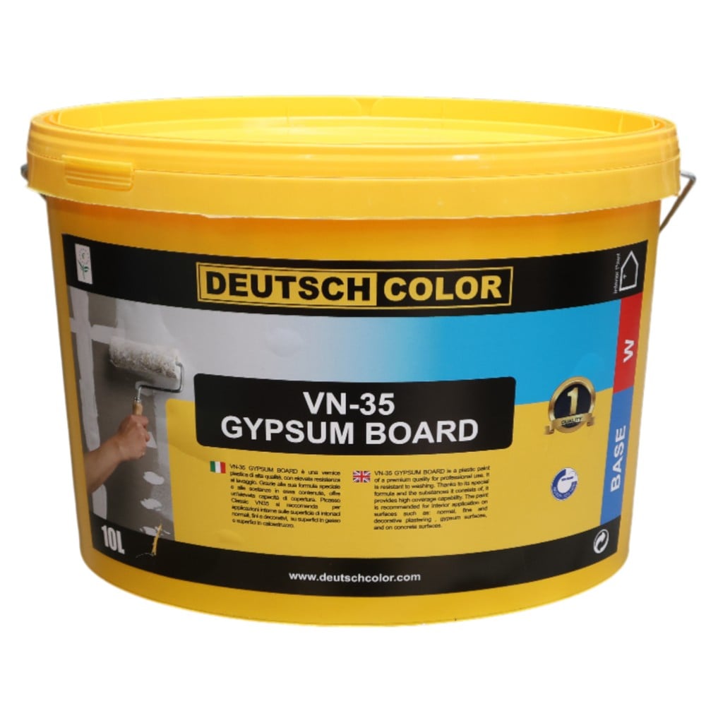 VN-35 Gypsum Board është një bojë e brendshme me mbulim të lartë dhe opacitet të lartë. Përbëhet nga polimere në dispersion ujore, inerte të përzgjedhura, dioksid titani dhe aditivë specifikë për të përmirësuar punueshmërinë e saj.VN-35 Gypsum Board përdoret si një bojë e brendshme me përfundim mat, e aplikuar direkt mbi panele gipsi, suva përfundimtare me bazë gëlqereje, gëlqere-cement, suva gipsi dhe sipërfaqe të tjera ku kërkohet mbulim i lartë dhe aftësi e mirë mbuluese.Aplikohet me furçë ose rul.Holloni produktin VN-35 Gypsum Board me 10-15% ujë, duke u siguruar që të jetë përzier plotësisht me bojën. Përdorni një mikser për të marrë përzierje më uniforme.Cikli i aplikimit përfshin aplikimin e të paktën dy shtresave të bojës. Koha e nevojshme ndërmjet dy veshjeve është 2-4 orë në varësi të kushteve të motit, temperaturës dhe lagështisë.