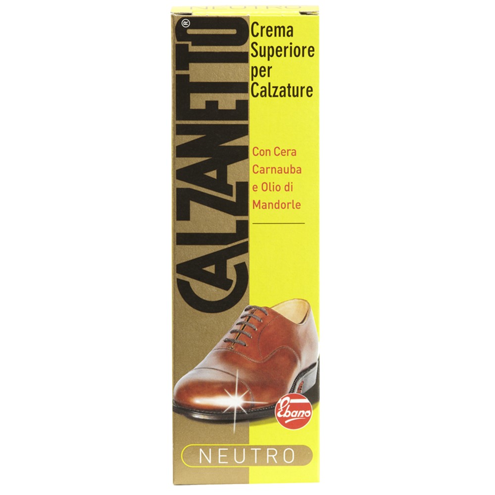 Boja për këpucët e lëkurës Calzanetto është një krem për këpucë me formulë bazë që ruan shumicën e kohës një pjesë të përbërësve. Përzierja e dyllrave të imët, tretësve, pigmenteve dhe ujit e bën atë një produkt me cilësi të lartë, të lehtë për t'u aplikuar, me shkëlqim të lartë, fuqi të mirë ringjyrosjeje dhe diskrete ndaj ujit. Përdoret me përshtatshmëri dhe rregullisht i siguron lëkurës më shumë se mbrojtje.