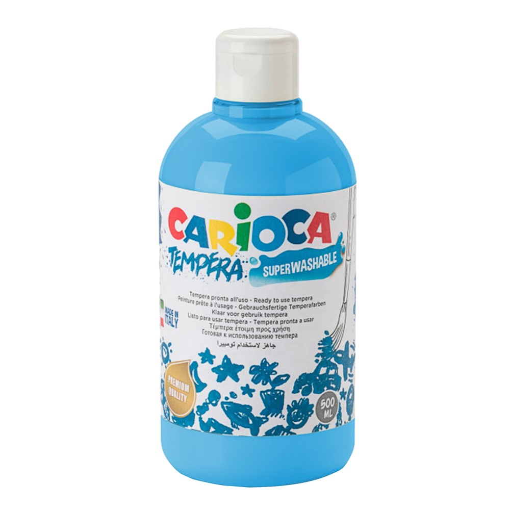 Bojë tempera për fëmijë, në paketim 500 ml prej materiali plastik, në ngjyrë të kaltër, me përbërje jo-toksike, e cila nuk shkakton irritim në lëkurë. Përdoret nga fëmijët në kopshte dhe shkolla, për të pikturuar apo për ngjyrosjen e punimeve të tjera artistike, pastrohet lehtësisht me ujë dhe është e përshtatshme për t'u aplikuar në telajo, në fletë kartoni apo në fletë letre të fortë. Ky produkt është i përshtatshëm për përdorim nga fëmijë të moshës mbi 3 vjeç.
