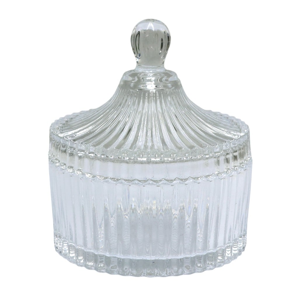 Bomboniere prej qelqi, transparente, me përmasa 10.5 x 11 cm. Kjo kavanoz elegante është perfekte për ruajtjen e bomboneve, ëmbëlsirave të vogla ose objekteve dekorative. Qelqi i pastër lejon identifikimin e përmbajtjes me një shikim, duke i shtuar sofistikim çdo tavoline ose ekspozimi. E qëndrueshme dhe e lehtë për t’u pastruar, kombinon funksionalitetin me dizajn të rafinuar.