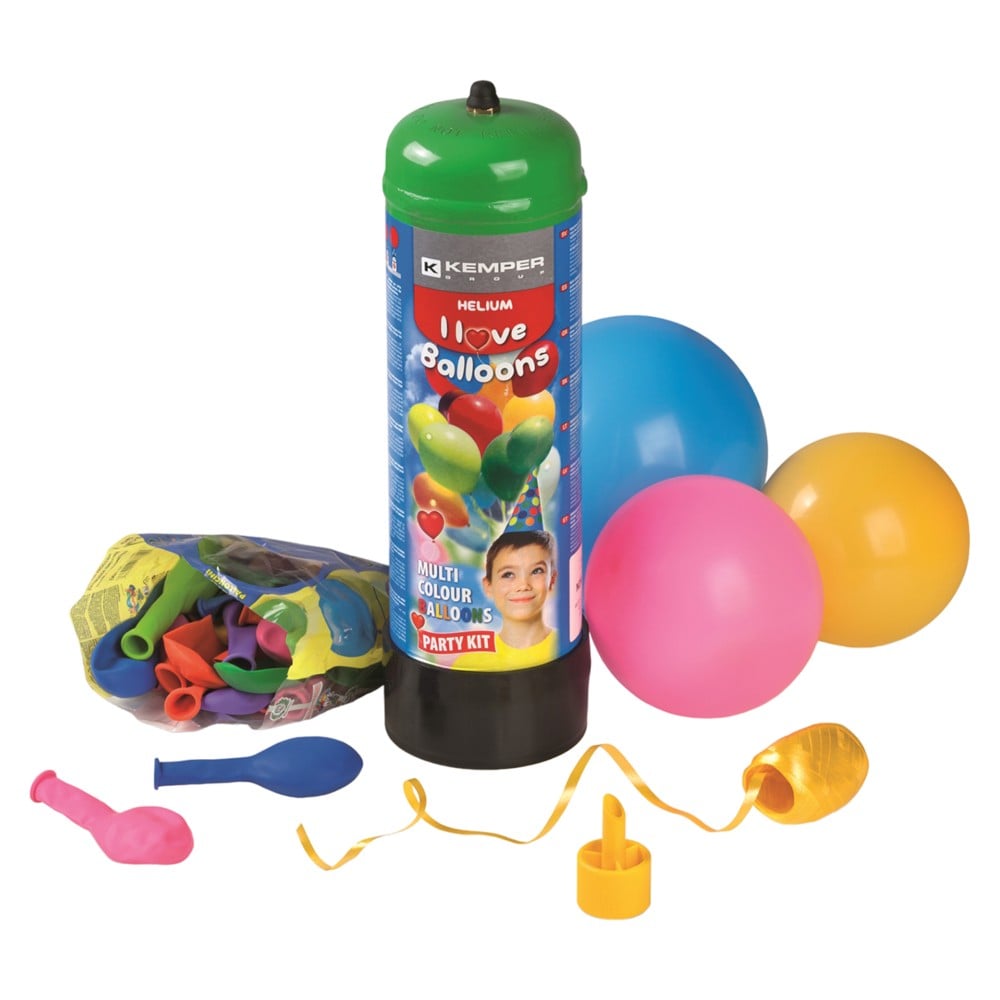 Seti ideal per krijimin e atmosferes festive. Bombula e Heliumit, permban gaz te mjaftueshem per 30 mbushje. Mbushja kryhet nepermjet rduktorit plastik me ane te presionit te bombules.