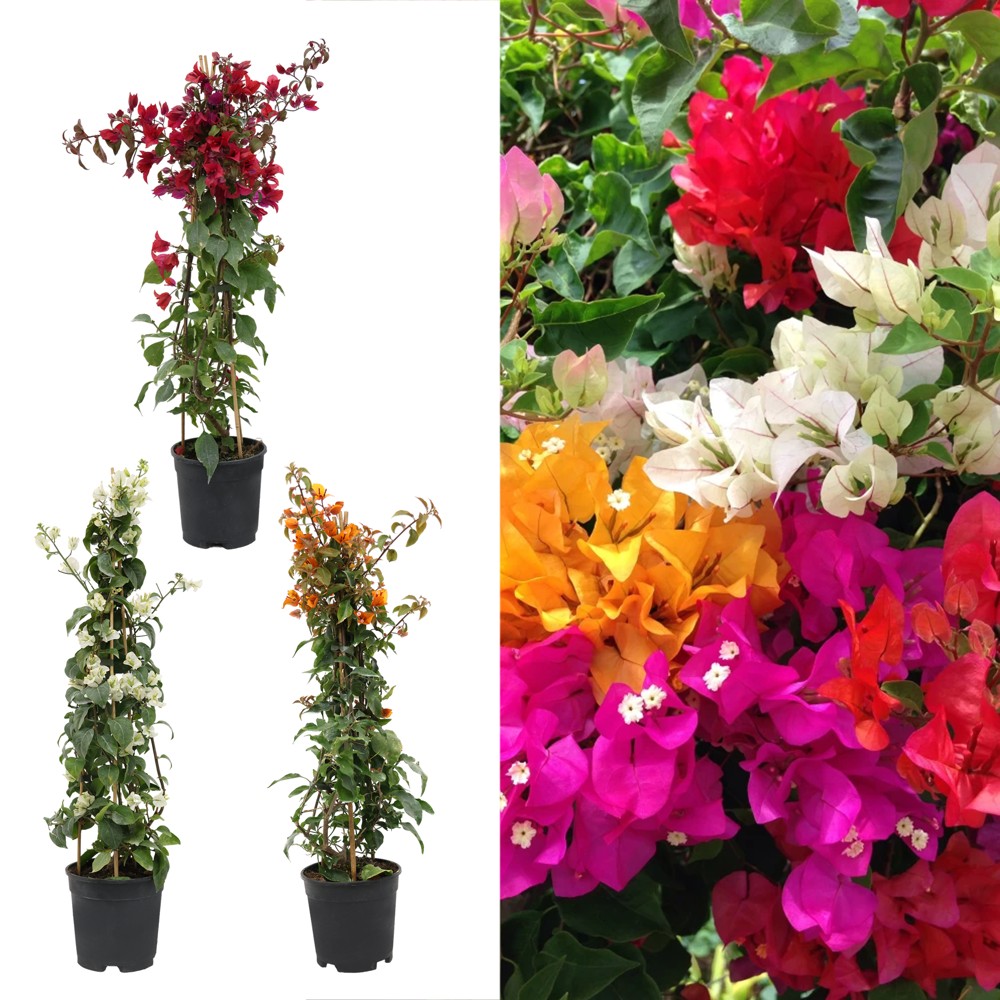 Bougainvillea është një bimë me gjelbërim të përhershëm me ngjyra të dukshme dhe spektakolare. Lulet vijnë në një gamë të madhe ngjyrash duke përfshirë vjollcën, vjollcën, rozën, kajsinë, të kuqe, të verdhë dhe të bardhë. Ato janë në fakt të mëdha të holla letre që rrethojnë një grup qendror lulesh të vërteta, të cilat janë me ngjyrë të vogël dhe të bardhë. Kushtet e rritjes pa ngrica janë thelbësore për bougainvillea. Ato mund të prodhojnë lulëzime të përsëritura për shumë muaj nëse kushtet janë të përshtatshme. Bougainvilleas shiten shpesh si bimë shtëpie, zakonisht të kapura rreth një rrethi teli ose në një kornizë, por ato mund të rriten edhe si një shkurre, lart një mur ose mbi një hark. Nga natyra, ato kanë nevojë për shumë hapësirë për tu rritur dhe mund të arrijnë lehtësisht dy metra lartësi. Varietetet kompakte të bougainvillea janë në dispozicion ato rriten deri në një metër të lartë dhe funksionojnë mirë si shkurre ose mund të mbillen edhe në një shportë të varur.