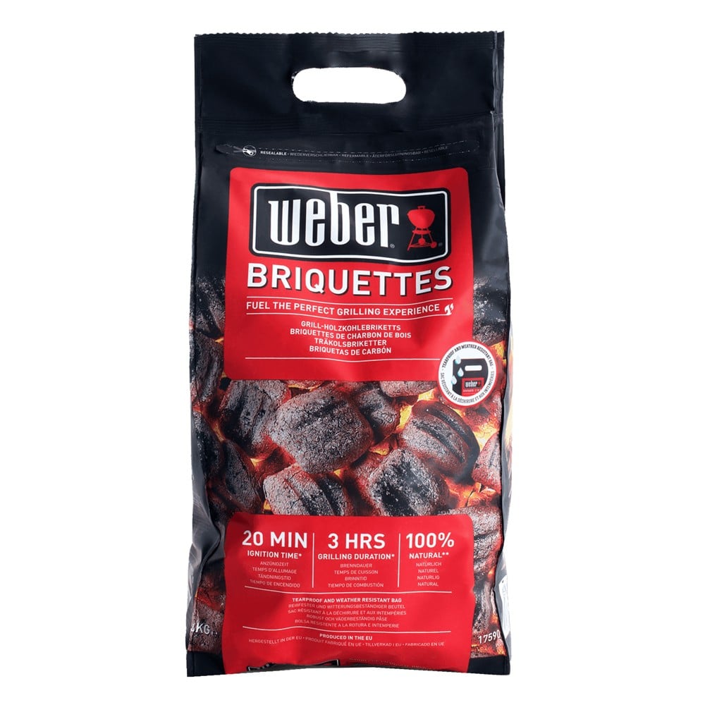 Briketat per barbekju, Weber, ndizen me shpejt se llojet e tjera te briketave. Dy vijat paralele qe kane ne trup bejne qe ajri te kaloje me lehte ndermjet tyre dhe te pershpejtojne kohen e ndezjes. Ato kane nje permase me te madhe se briketat e zakonshme, duke bere qe nxehtesia te shperndahet ne menyre uniforme, dhe ushqimet te gatuhen ne kete menyre gjithashtu. Koha e ndezjes se tyre eshte 20 minuta, dhe ruan nxehtesine per rreth 3 ore. Nje brikete ka permase 3x5.5x6 cm, dhe nje peshe prej 44 gr secila.
