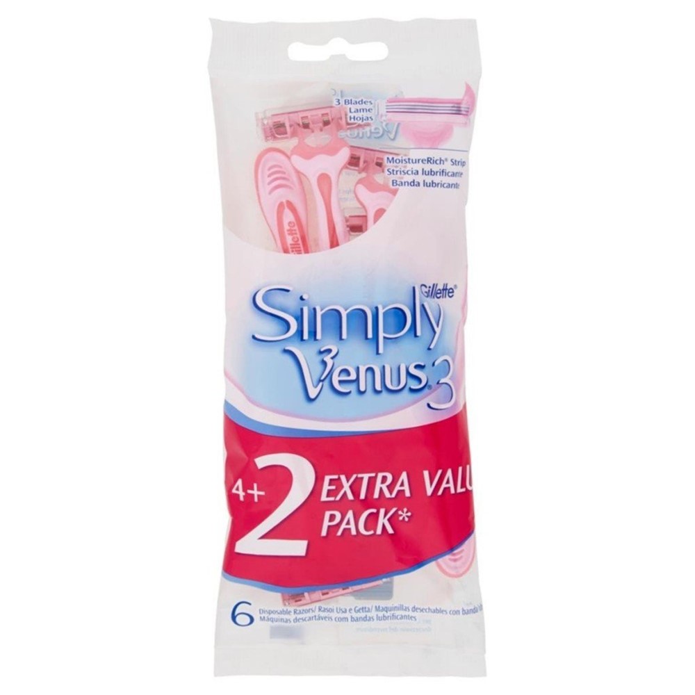 Po vlerësoni:Brisk rroje njëpërdorimësh për femra Venus, Gillette, plastikë dhe inoks, 18.5x10.5x4 cm, rozë pastel, 6 copë