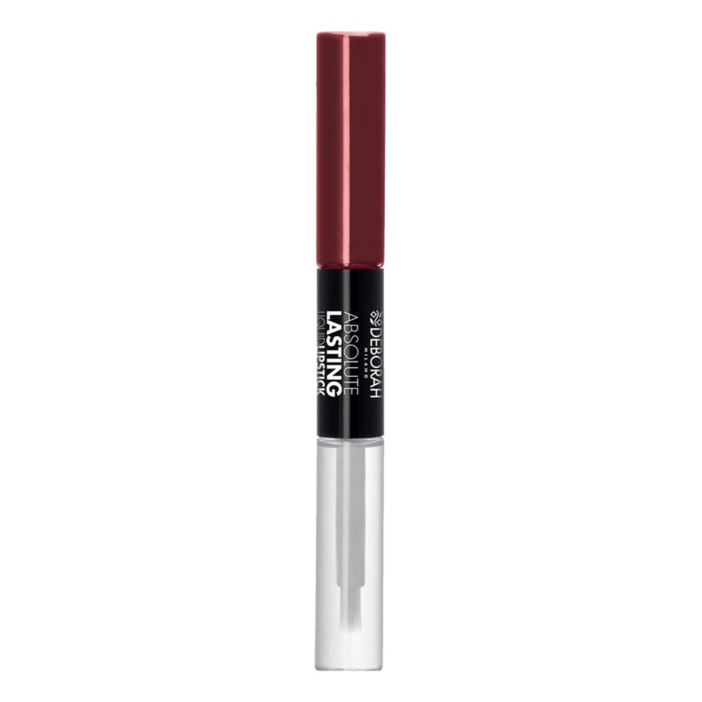 Buzëkuq i lëngshëm dhe shkëlqyes për buzët 2 në 1, 18 Deep Red, Absolute Lasting, Deborah, plastikë, 8 ml, e kuqe merlot, 1 copë