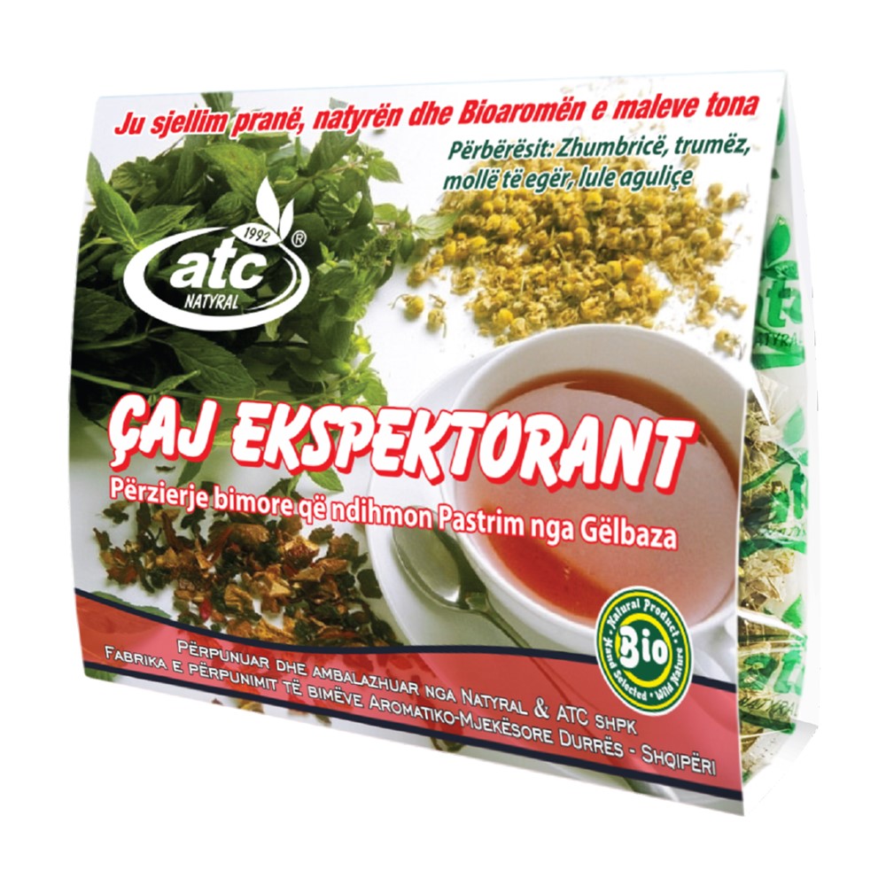 Çaj bimor ekspektorant, me një përzierje bimore natyrale, që ndihmon në sekretimin e gëlbazës përmes kanaleve të frymëmarrjes dhe është efektiv në trajtimin e kollës. Zhumbrica në sajë të përmbajtjes së esencave si timol, tinane, substanca të hidhura, flavone, substanca fitoncide, etj. ndihmon në nxjerrjen e gëlbazës, në shtimin e rrjedhes së lëngut të stomakut, në përmirësimin e tretjes, në përmirësimin e spazmave të muskulaturës së lëmuar dhe në përmirësimin e çrregullimeve të stomakut e të zorrëve. Ndihmon shumë në kollën e bardhë. Trumëza përmban taninë dhe cimol, në sajë të të cilave nxit tretjen, largon gazrat nga zorrët, nxit nxjerrjen e gëlbazës dhe sistemin nervor. Aguliçja ndihmon në nxjerrjen e gëlbazës nga rrugët e frymëmarrjes dhe kundërvepron ndaj efizemës së mushkërive dhe bronkiteve akute dhe kronike. Molla përmirëson shijen e çajit dhe ka përmbajtje të lartë të vitaminës C.