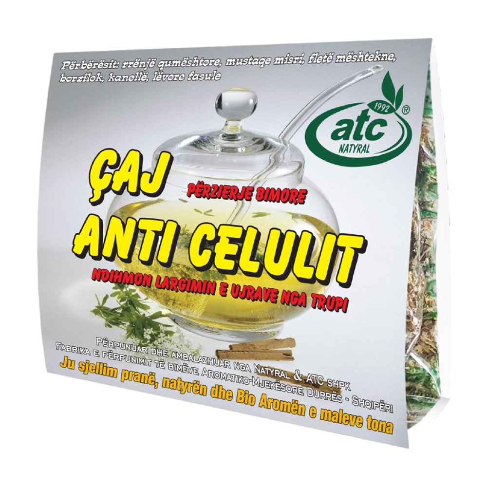 Çaj bimor me efekt anti-celulit, me një formulë të pasuruar me rrënjë qumështoreje, kanellë, borzilok, gjethe mështekne, mustaqe misri, lëvore fasuleje dhe bimë të tjera të pasuruara me potasium, kalcium dhe vitaminë C. Rrënja e qumështores në saj të përmbajtjes dhe vetitë diuretike, rekomandohet në rastet e ënjtjes së trupit nga mos dalja e ujit prej tij dhe formimi i celuliteve. Kanella dhe borziloku ndihmojnë në shkrirjen e celulitit me veprimin e tyre ngrohës. Fletët e mështeknës përmbajnë esencë me betulol e betulen, saponinë, rrëshirë, vitamina, tanine katekike dhe flavonoide, që shtojnë veprimin diuretik i cili jep efekt të mirë në trajtimin e sëmundjeve të zemrës që shoqërohen nga mbajtja e ujit në organizëm, si edhe ndihmojnë në nxjerrjen e acidit urik e të kolisterinës. Mustaqet e misrit ndihmojnë në mënjanimin e ujit nga indet dhe ndihmojnë në largimin e celulitit. Lëvorja e fasules ka veti diuretike, në rastet e grumbullimit të ujit në organizëm, si dhe luan një rol pozitiv në funksionimin e veshkave.