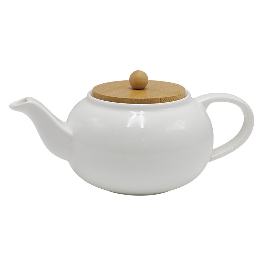 Po vlerësoni:Çajnik, qeramikë/bambu, e bardhë/natyrale, 17x12x8 cm