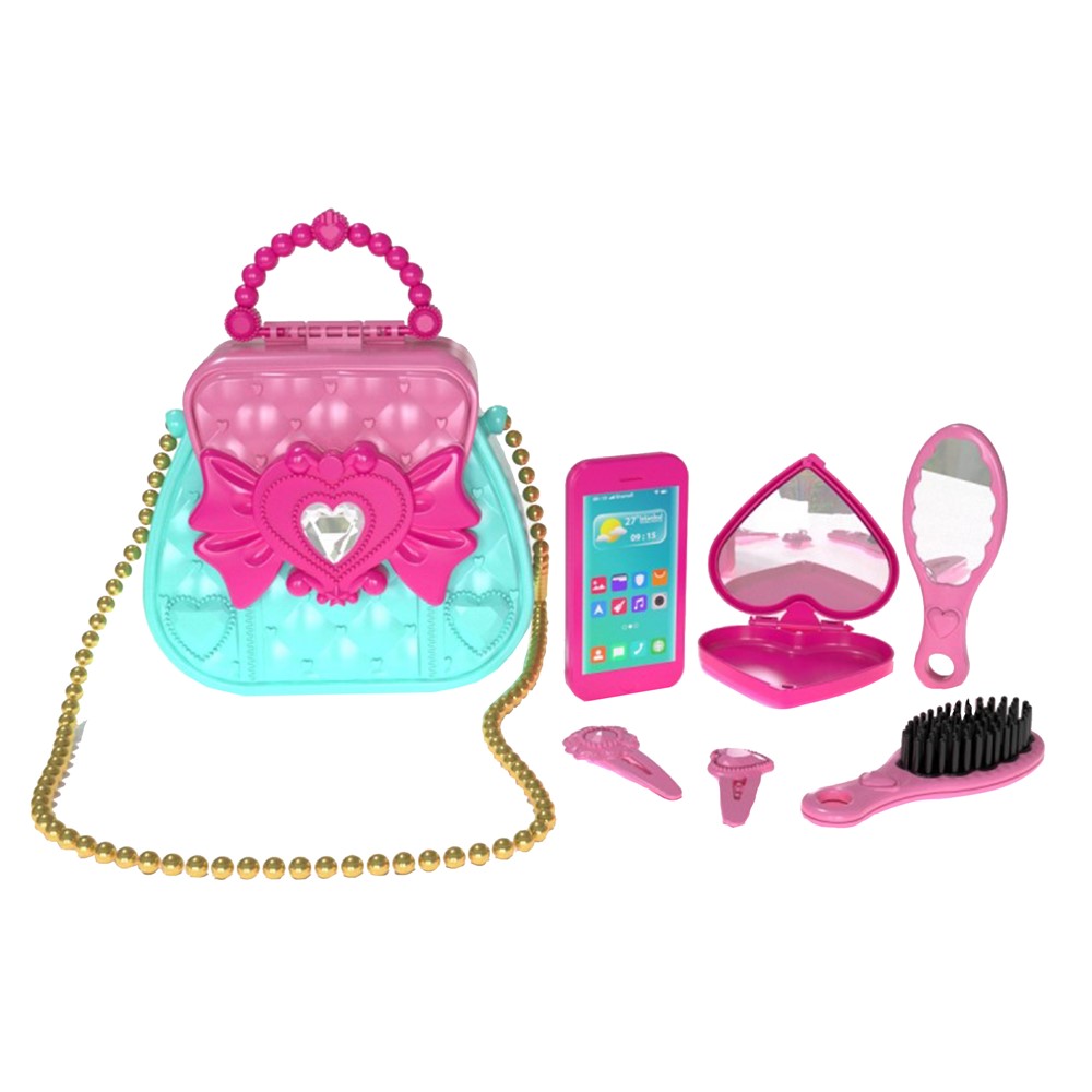 Çantë me aksesorë makeup-i, e cila përmban 4 aksesorë makeup-i, prej materiali plastik, në ngjyra të ndryshme. Kjo lodër ndihmon në zhvillimin e aftësive motorike dhe aftësive të të mësuarit, dhe nxit zhvillimin e imagjinatës dhe kreativitetit tek fëmijët. Materiali përbërës dhe boja nuk kanë përmbajtje toksike apo të dëmshme për fëmijët dhe produkti është i çertifikuar për siguri në përdorim. Ky produkt është i përshtatshëm për përdorim nga fëmijë mbi 3 vjeç.