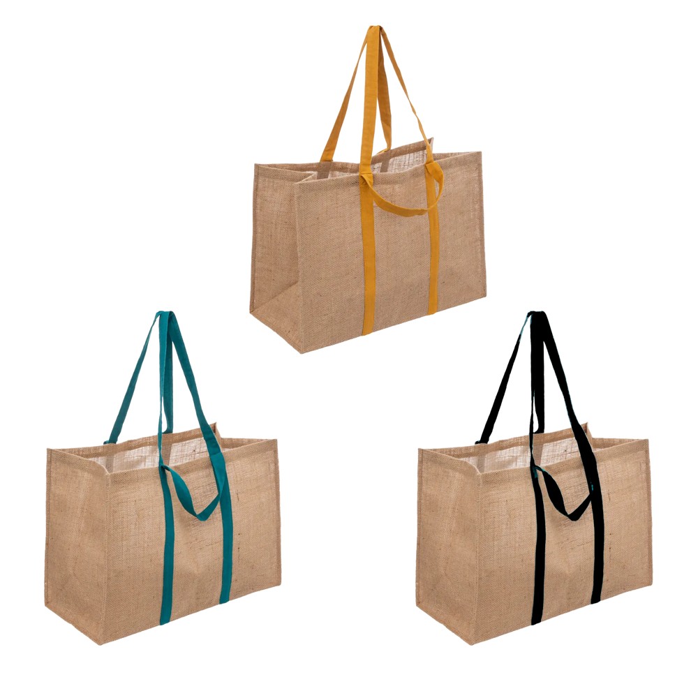 Çantë pazari e përshtatshme për të transportuar në mënyrë komode blerjet tuaja në market. Material cilësorë jute si dhe dizajn moder. Përmasat e çantës me rripat: 23x50x66 cm Përmasat e çantës pa rripat: 23x50x35 cm