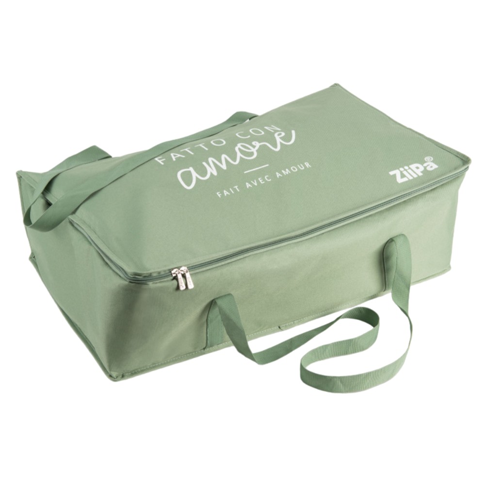 Cantë transportuese për furrën me pelet ZiiPa. E krijuar prej material rezistent ndaj ujit, borës, erës dhe diellit. Ajo ka dy doreza të mëdha të cilat lejojnë transportimin më të lehtë. Ka një përmasë prej 64x40x20.5 cm, dhe vjen në ngjyrë jeshile.