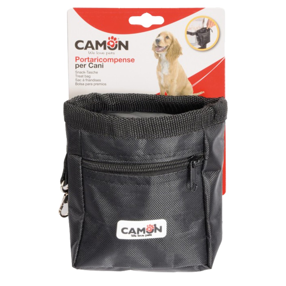 Ideal per depozitimin e ushqimit "Snack" i cili perdoret si shperblyes per trajnimin e qenit tuaaj. Canta kapet me ane te rripit dhe perbehet nga disa xhepa, per lehtesi menaxhimi te snackut shperblyes.Ka nje permase relativisht te vogel, 12 x 6 x 14 cm, per tu marre me vete dhe per tu transportuar, gje qe nuk ju pengon ta keni ate kudo me vete.