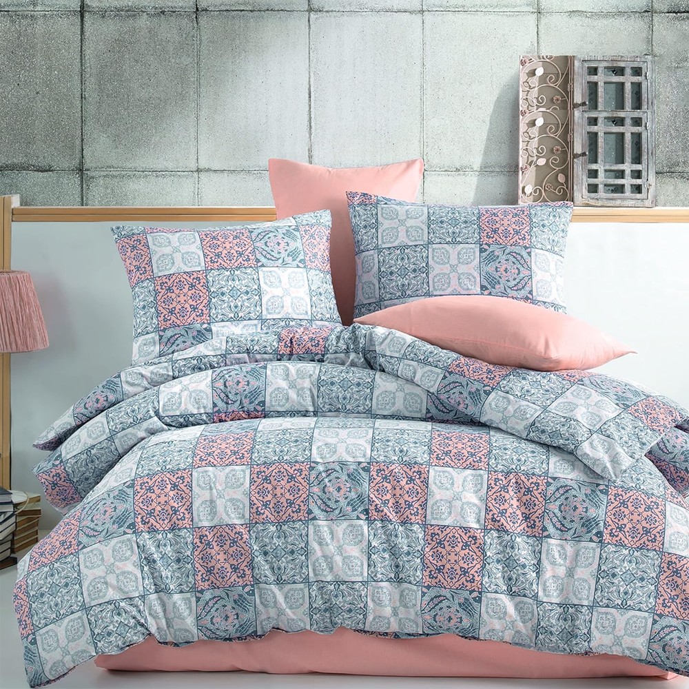 Set çarçafësh tek, i cili përfshin çarçafin e poshtëm, çarçafin e sipërm dhe 1 këllëf jastëku. Materiali cilësor hipoalergjik siguron komfort dhe freski gjatë përdorimit, duke e bërë gjumin më të rehatshëm. Dizajni unik me dy ngjyra bazë lejon kombinimin me lehtësi të setit në ambientet tuaja të brendshme, duke u dhënë dhomave të gjumit një pamje moderne dhe origjinale.