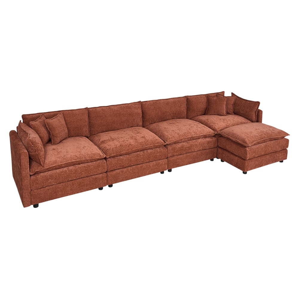 Divan, tapiceri tekstili, kornizë druri, këmbë plastike, portokalli, 374x150xH86 cm