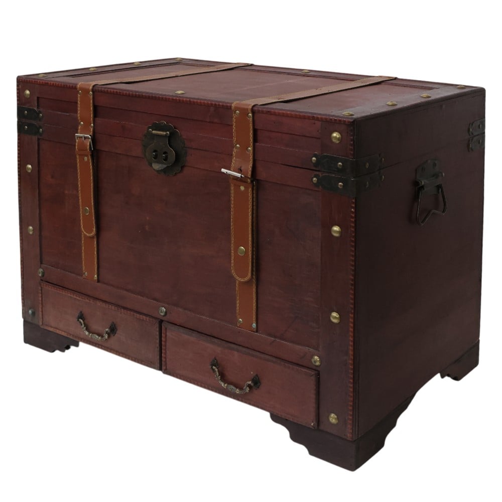 Po vlerësoni:Sunduk dekorues, material druri, veshje lëkure, kafe, 75x45xH57 cm