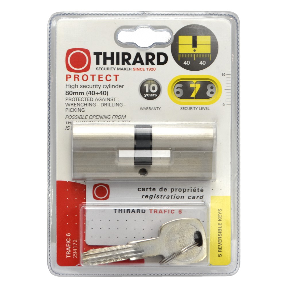 Cylinder 40x40mm, with mechanism of 6 pins for protection against puncture. With hardened steel pins and has 5 keys, a personal security card for duplicate keys.
