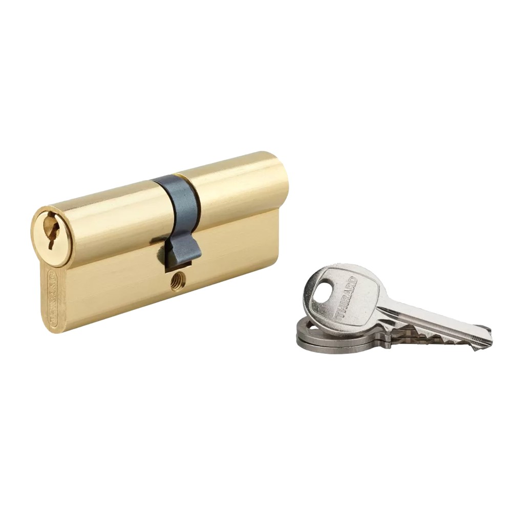 Cilinder bronzi, 40x40mm me mekanizëm prej 5 kunjash për mbrojtje kundër shpimit. Me kunja çeliku të ngurtësuar dhe ka 3 çelësa.