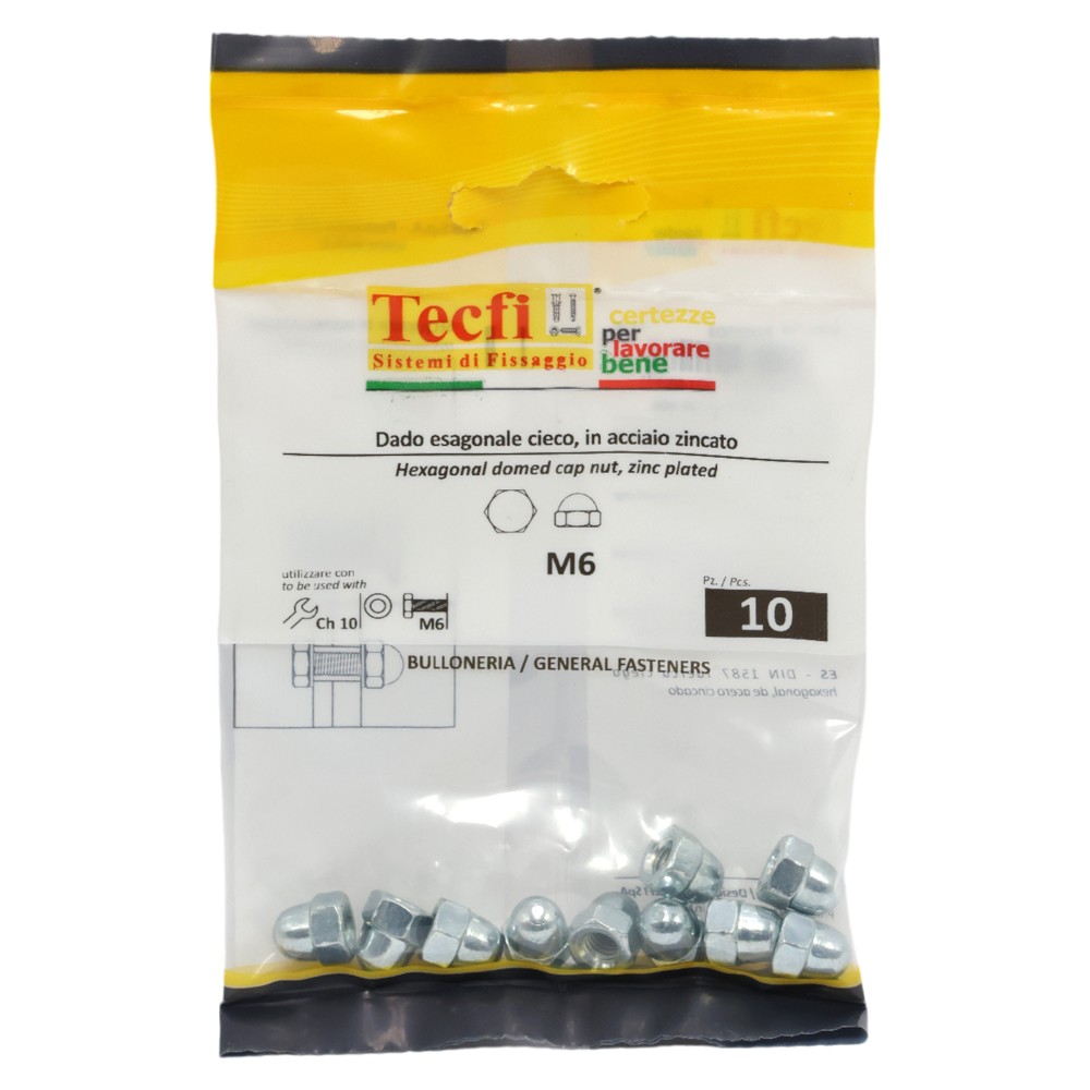 Dado hegzagonale DIN1587 me kapuç, M6mm , Bag 10