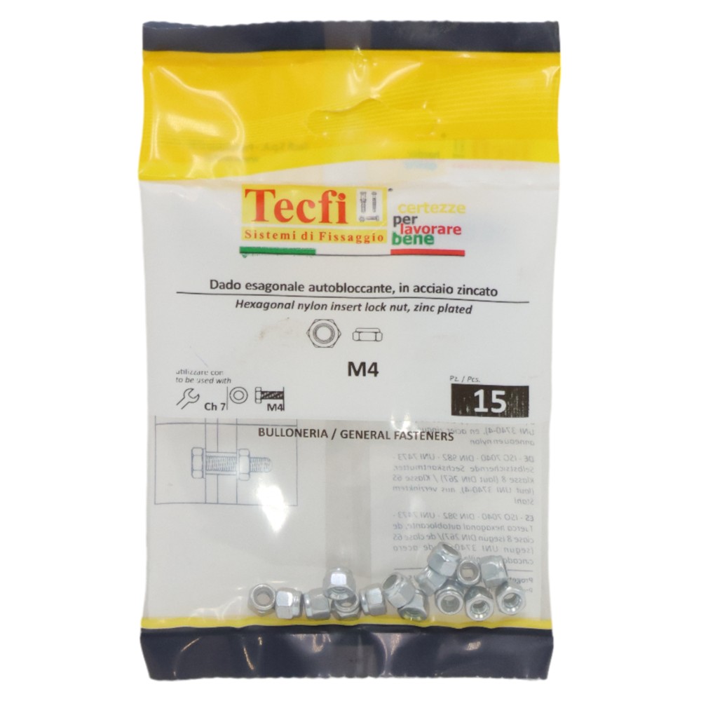 Nylon insert lock hexagonal nut,zinc plated DIN 982, M4mm, Bag 15