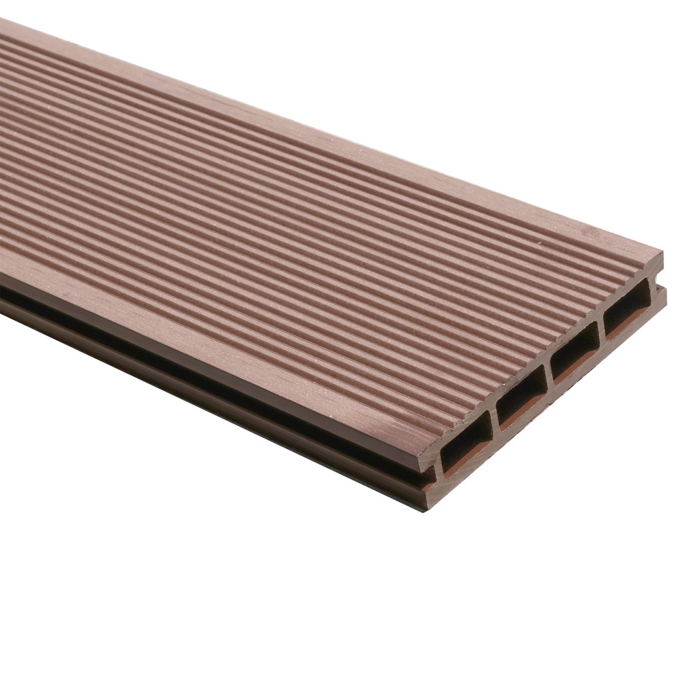 Decking per perdorim te jashtëm WPC, një përbërje me cilësi të lartë prej druri dhe plastika, veçanërisht e përshtatshme për hapësira të jashtme. Falë sistemit të integruar të kapëses së shpejtë, nuk nevojiten mjete ose ngjitës për instalim. Përmasat: 4000X146mm, trashësia 23mm. Zero PVC, kjo gamë është bërë me material ekologjik. Druri i përbërë është bërë nga 100% mbetje druri dhe 100% polietileni me densitet të lartë të ricikluar (PE). Fijet e drurit të përfshira në përbërjen e kësaj game vijnë nga druri i certifikuar nga FSC. L'