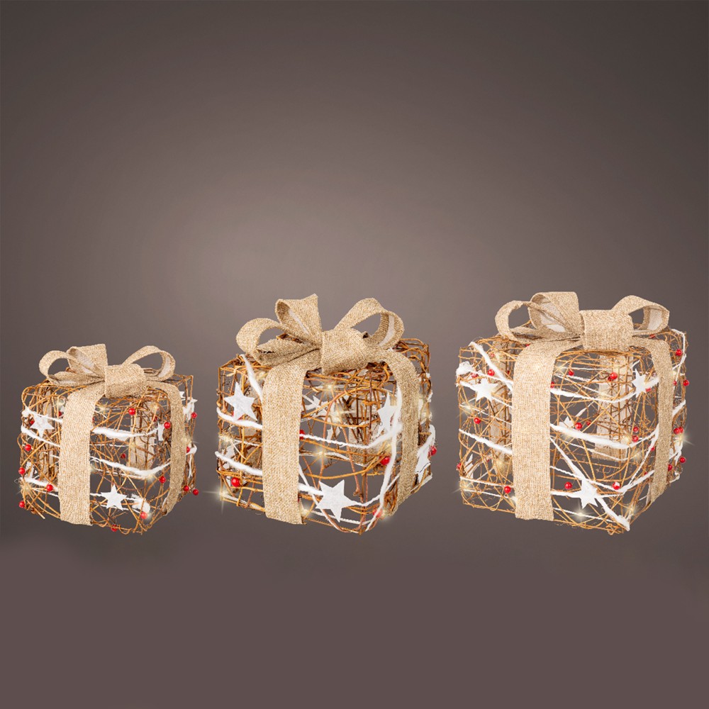 Dekor festiv, dhurata ndricim led, perdorim I brendshem, L25xW25xH30 cm, kafe/e bardhë e ngrohtë