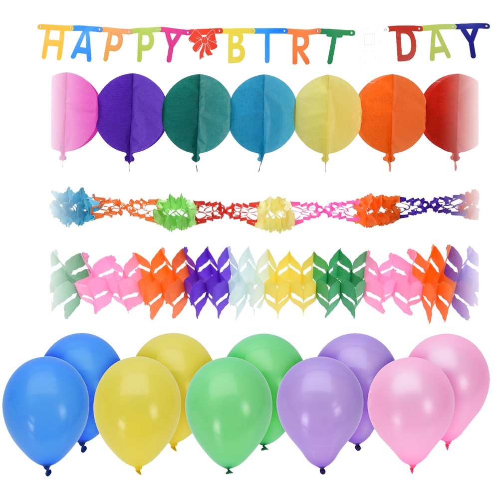Seti dekorimit për festa. Me këtë set ju mund të dekoroni tërë festën tuaj pa shpenzuar më tepër para. Seti përman pesë lloje të ndryshme dekoresh.