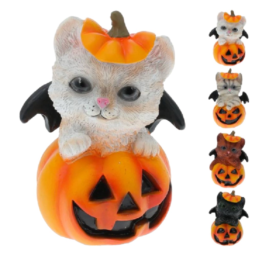 Dekorues halloween, mace me kungull, 12 cm, poliresin, mikse, 1 copë