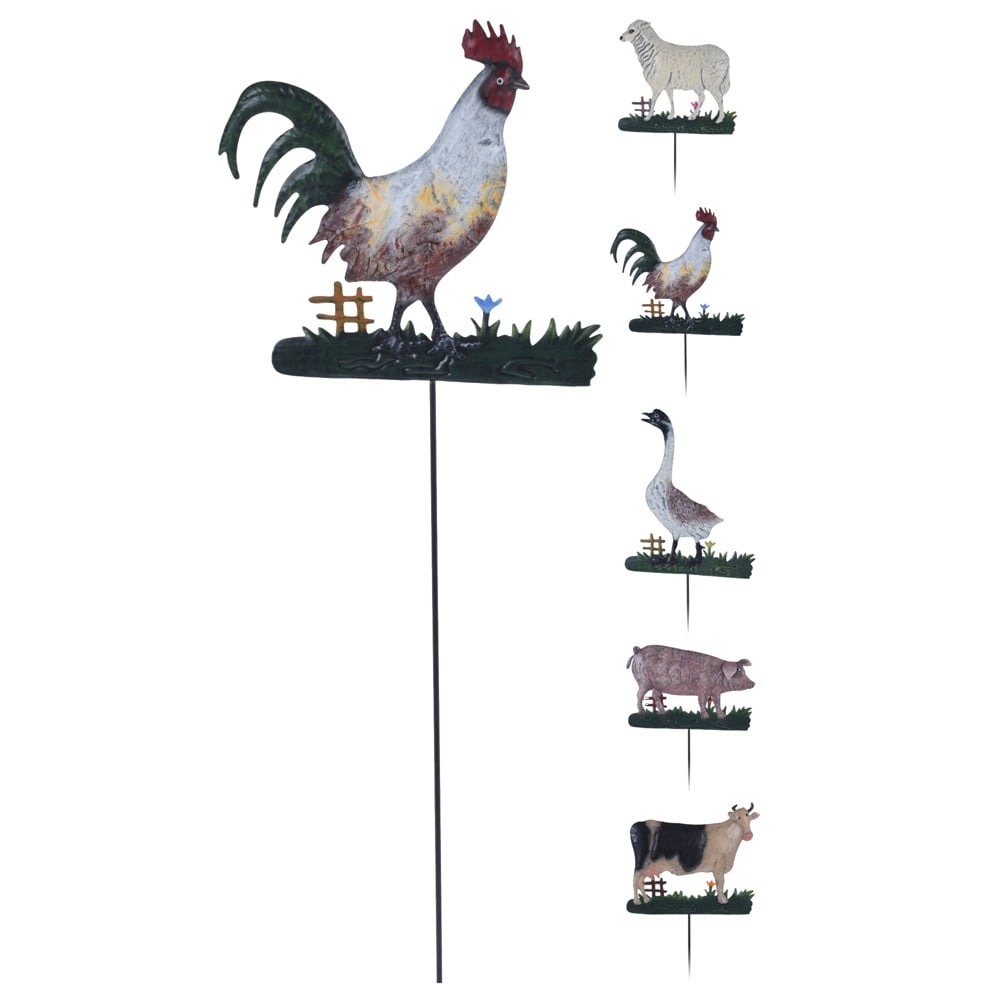 Shtoni këtë zbukurues shumëngjyrësh në gjelbërimin tuaj të preferuar për të mirëpritur vizitorët në kopështin tuaj në një stil ndryshe plot ngjyra. Kafshët e fermës kanë një konstruksion të fortë metali, ngjyra të ndryshme, dhe një shkop që mund ta vendosni në vazo ose kopësht. Është një mënyrë e sigurt për të përmirësuar dekorin tuaj në natyrë.