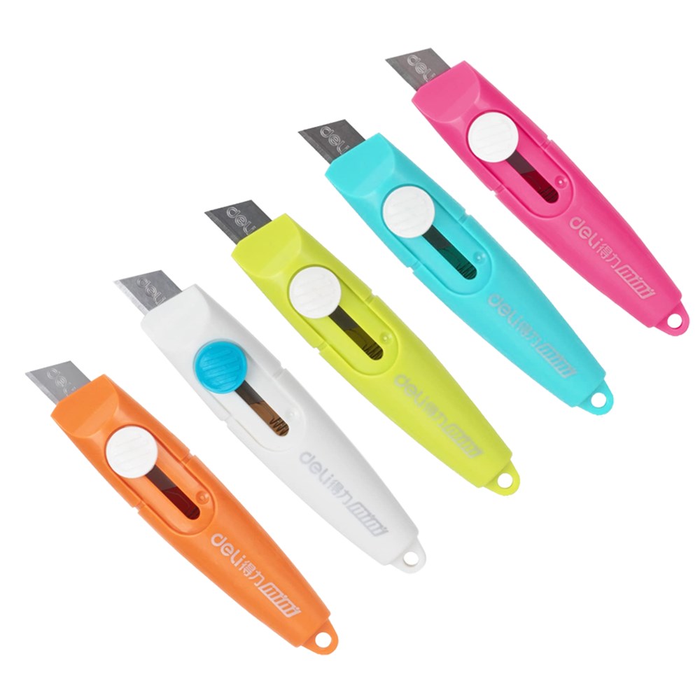 Deli Kjo thikë me tehe 9mm, mjaft praktike në përdorim.Të prodhuar nga një material plastik me tehe metalike dhe rezistent, ka mundesi për ndërrimin e teheve. E pershtatshme per prerjen e letrave deri ne gramamture 240gr