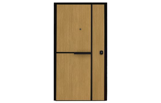 Kjo derë e blinduar për ambjente të jashtme është kombinim i funksionales me estetikën. Dera ka stilin dhe bukurinë që ju dëshironi për shtëpinë ose zyrën tuaj. Ajo mund të mbrojë familjen dhe pronën tuaj nga vjedhjet falë përbërjes që ka. Paneli i brëndshem i derës është me fletë të galvanizuar si dhe ka barriera celiku të ndërmjetme. Ka kundra bravë, Bravë me 3 pistona, sy magjik, MDF 8mm dhe shul të sipërm
