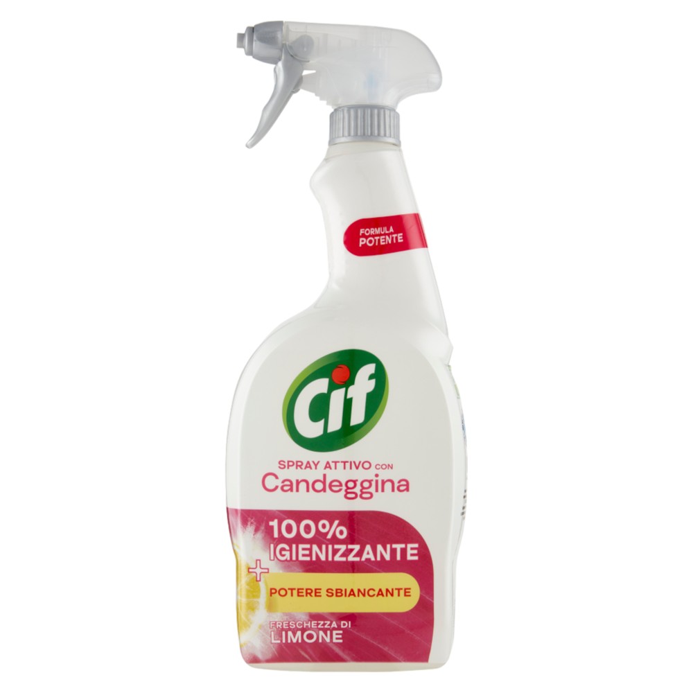 Cif Active Spray me zbardhues është kombinimi perfekt midis një veprimi të përditshëm pastrimi dhe higjienës 100% të thellë. Formula e tij e fuqishme me aromë limoni përmban zbardhues, ideal për dezinfektimin e sipërfaqeve të shtëpisë tuaj dhe si para-trajtim për pëlhurat e bardha. Aplikojeni në njollë para larjes, ndihmon në heqjen e njollave si verë, kafe, lëng frutash dhe buzëkuq.
