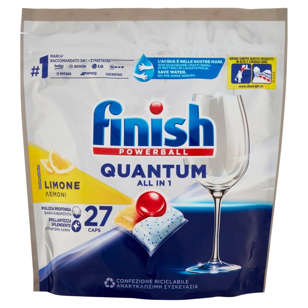 Detergjent enësh në formë kapsule, Finish quantum, all in 1, limon, 27 kapsula, 1 pako
