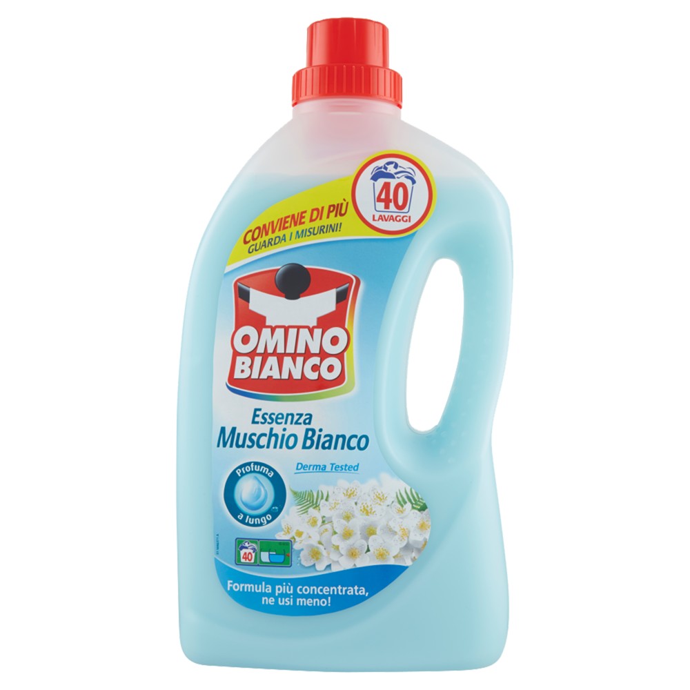 Efektiviteti dhe aroma e Omino Bianco kombinohen në një formulë të re të koncentruar që ju garanton të njëjtën fuqi pastrimi duke përdorur më pak detergjent. Përdoret për larjen e rrobave tuaja të materialeve të ndryshme nga pambuku, leshi, mëndafshi dhe fibra sintetike në lavatriçe duke ruajtur ngjyrat dhe pëlhurat.