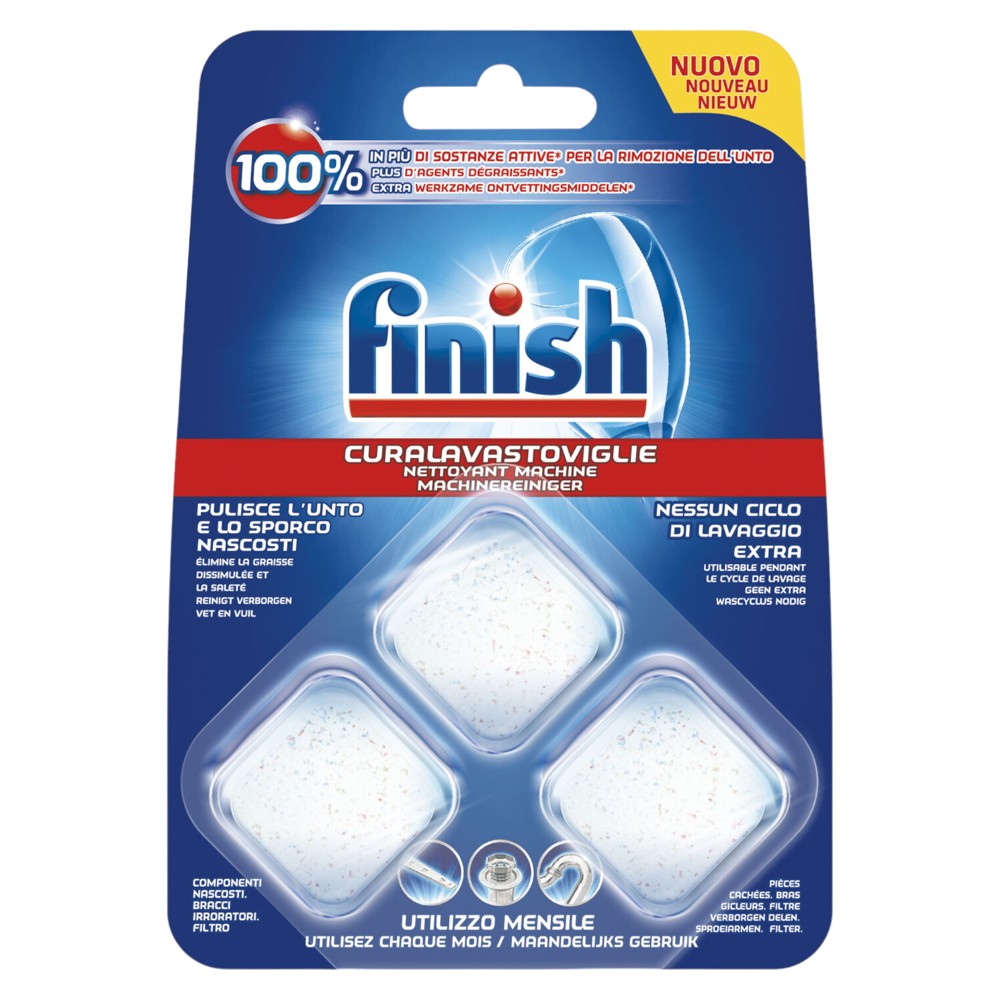 Finish Full Cicle Dishwasher Care parandalon grumbullimin e mbetjeve të yndyrës dhe papastërtisë. Falë formulës së saj të fuqishme, më degraduese dhe higjienike enët tuaja do të jenë 100% të pastra. Rekomandohet përdorimi i produktit të paktën një herë në muaj.