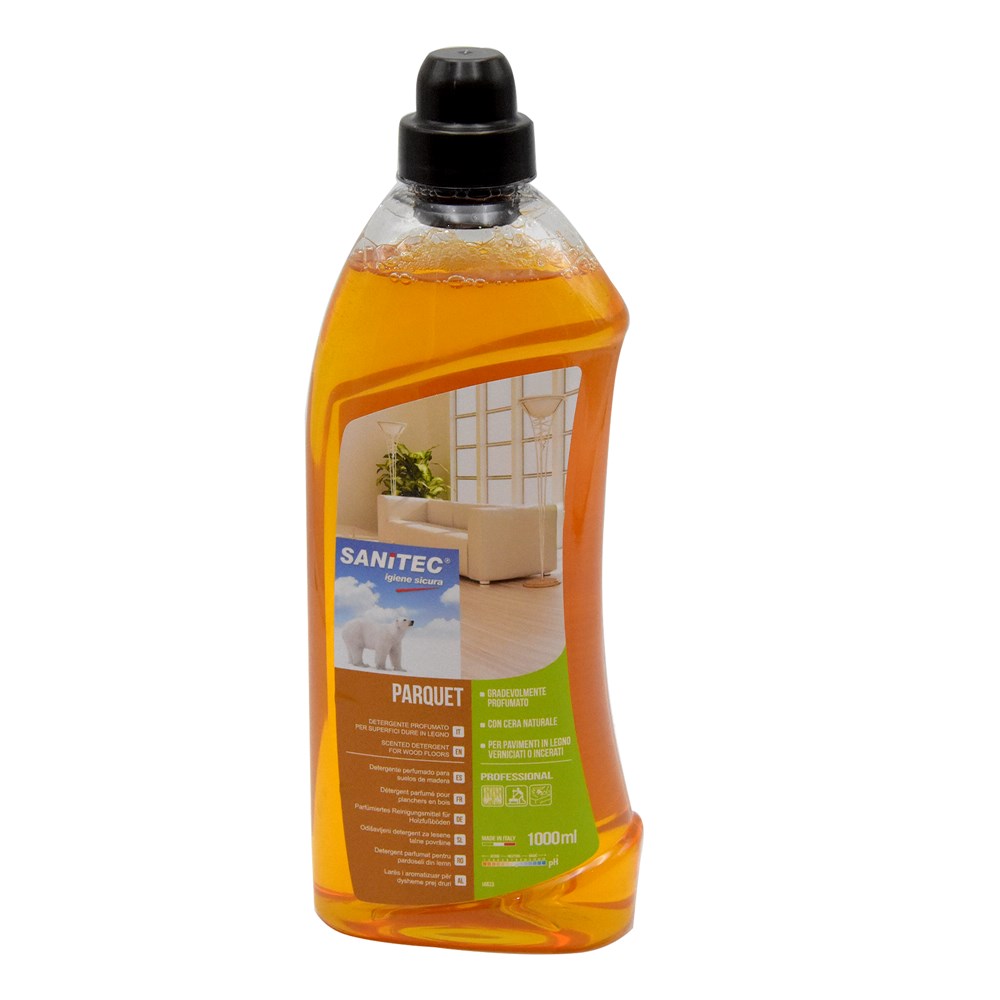 Detergjent Sanitec për pastrimin e përditshëm të dyshemeve të drurit . Pastron tërësisht pa shpëlarje, duke kombinuar mbrojtje superiore për sipërfaqet e trajtuara duke lënë një aromë të këndshme. Përdorimi: të gjitha dyshemetë dhe sipërfaqet e drurit që lahen