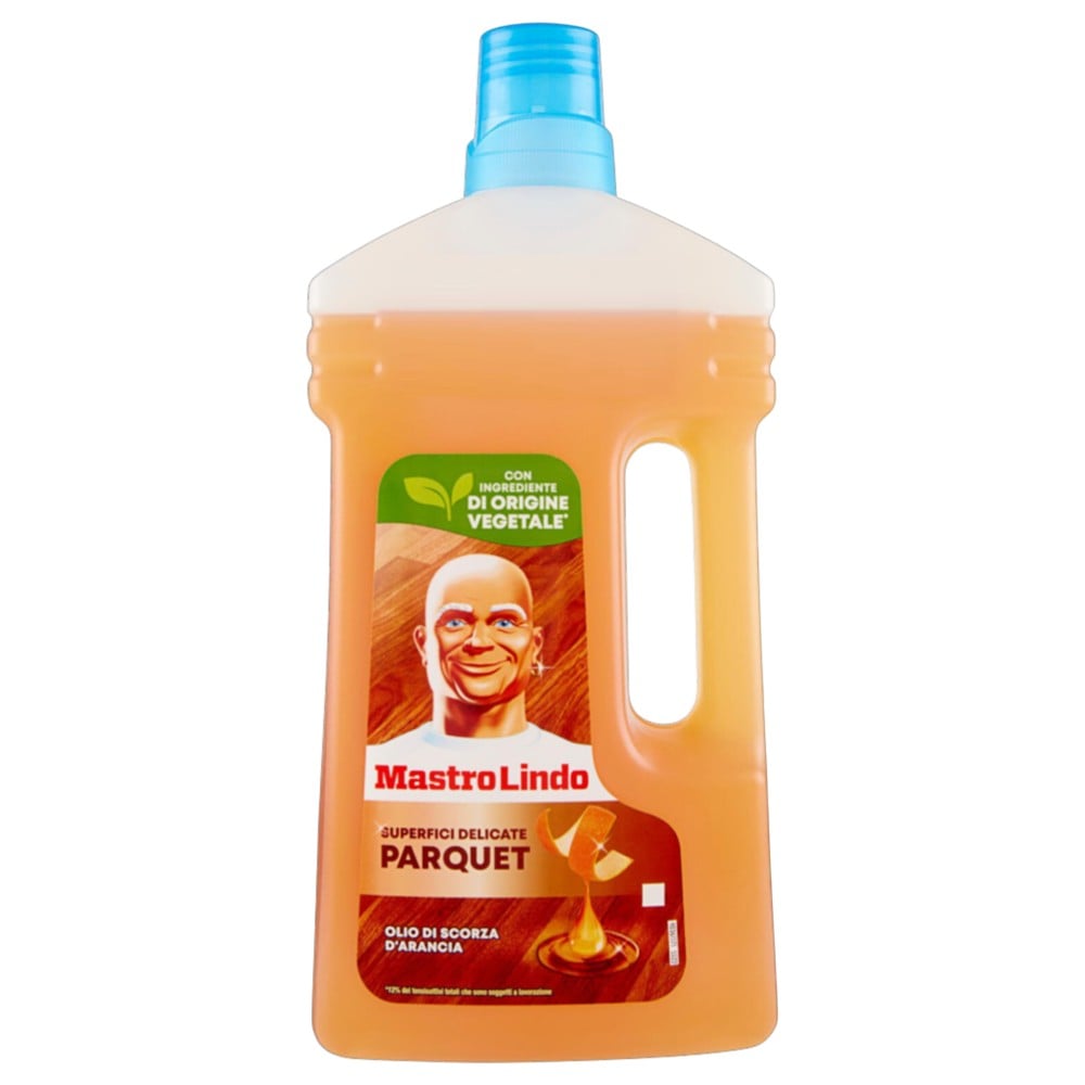 Kujdesuni për parketin me detergjentin për dysheme druri Mastro Lindo. Formula e tij me përbërës bimore heq papastërtitë dhe yndyrën nga sipërfaqet prej druri pa i dëmtuar ato. Edhe njollat më të vështira largohen lehtësisht, ndërsa shtimi i vajit të lëkurës së portokallit lë dyshemetë me aromë të freskët dhe të këndshme.